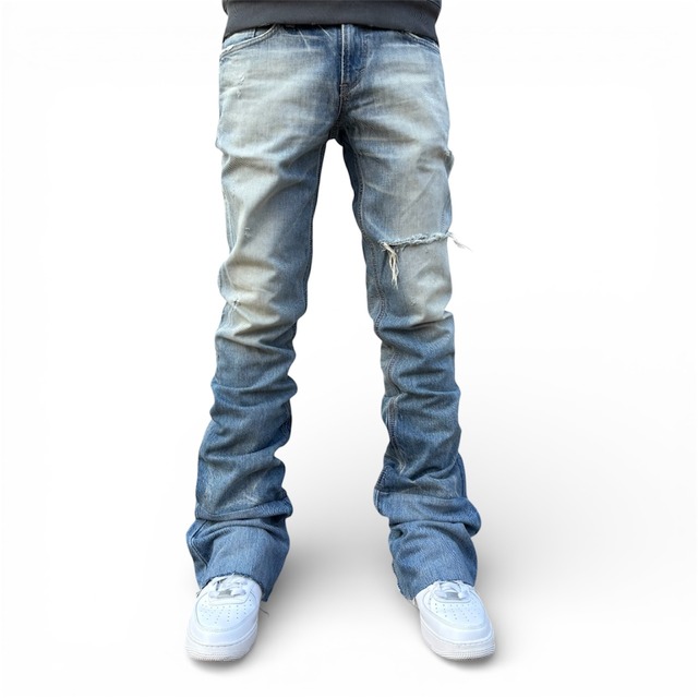 WWi.LONG SKIRT (Distressed custom) Body:Levi's ウエスト:約72cm ヒップ:約86cm 総丈:約90cm ヴィンテージリーバイスデニムを解体し、ロングスカートに再構築後、ダメージ加工を施しました。 ONE OF A KIND.